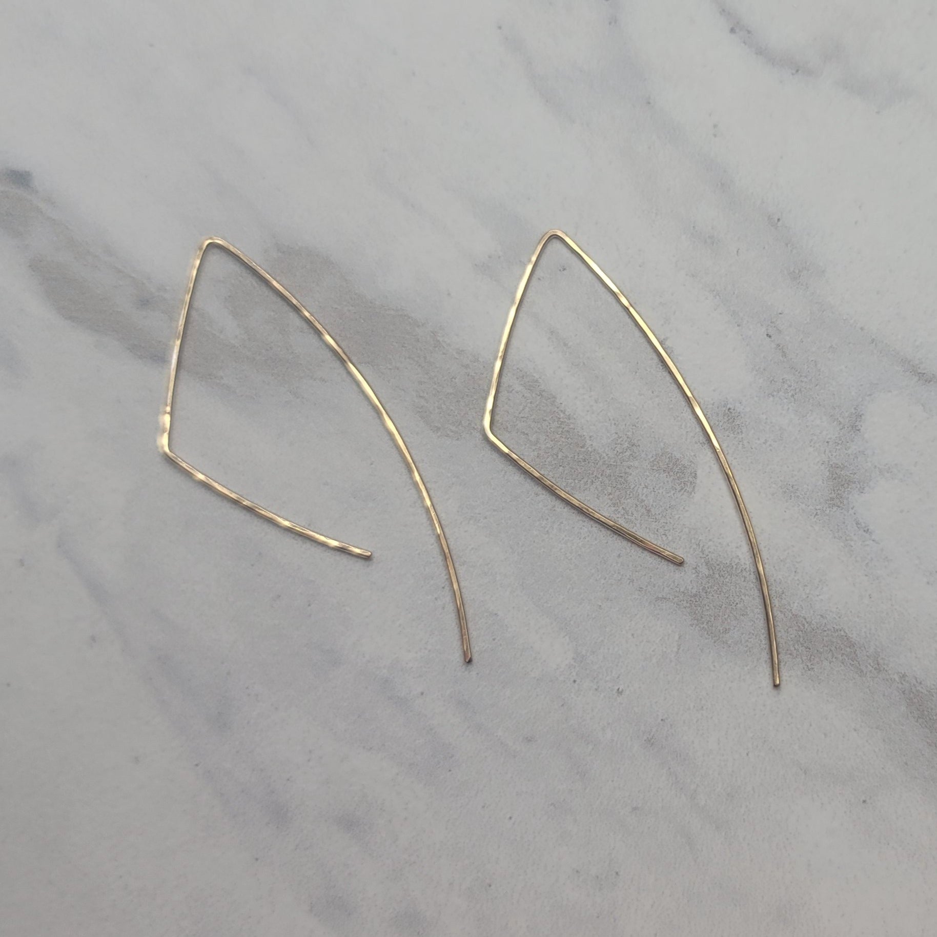Gold Filled wire is hammered into this unique shape. 2.25" long,1" wide.