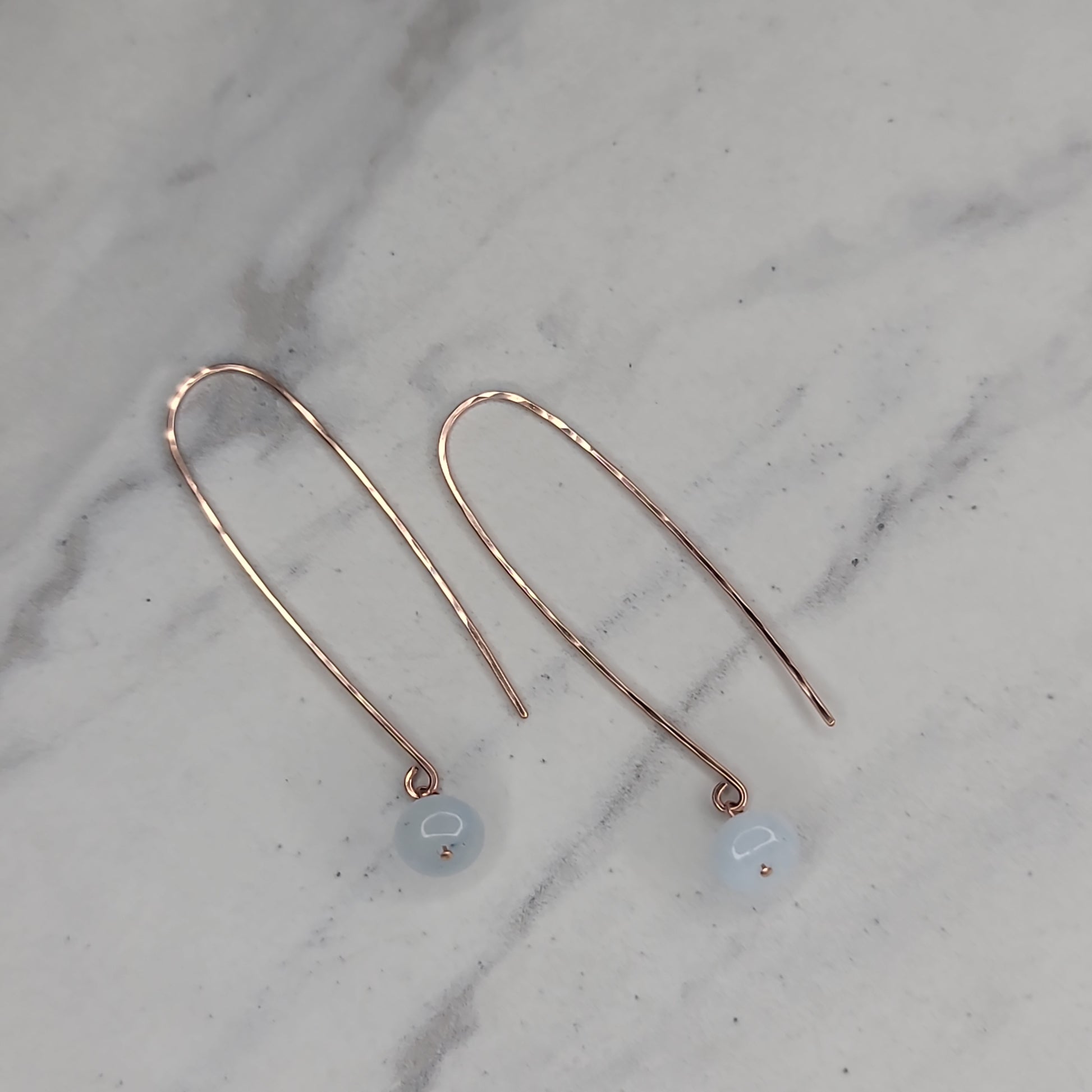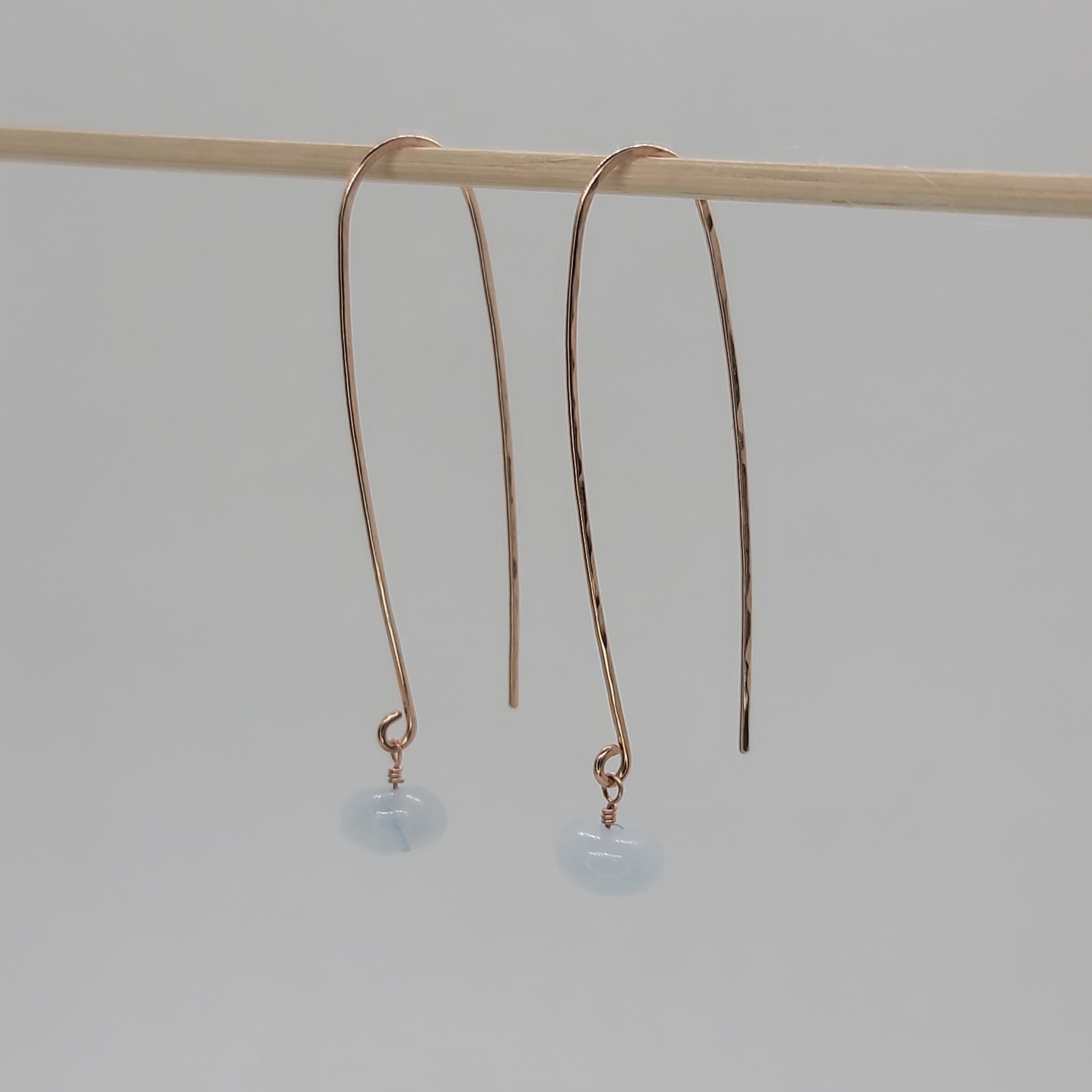 Hand shaped and hammered pink gold filled wire is adorned with Aquamarine gemstones.